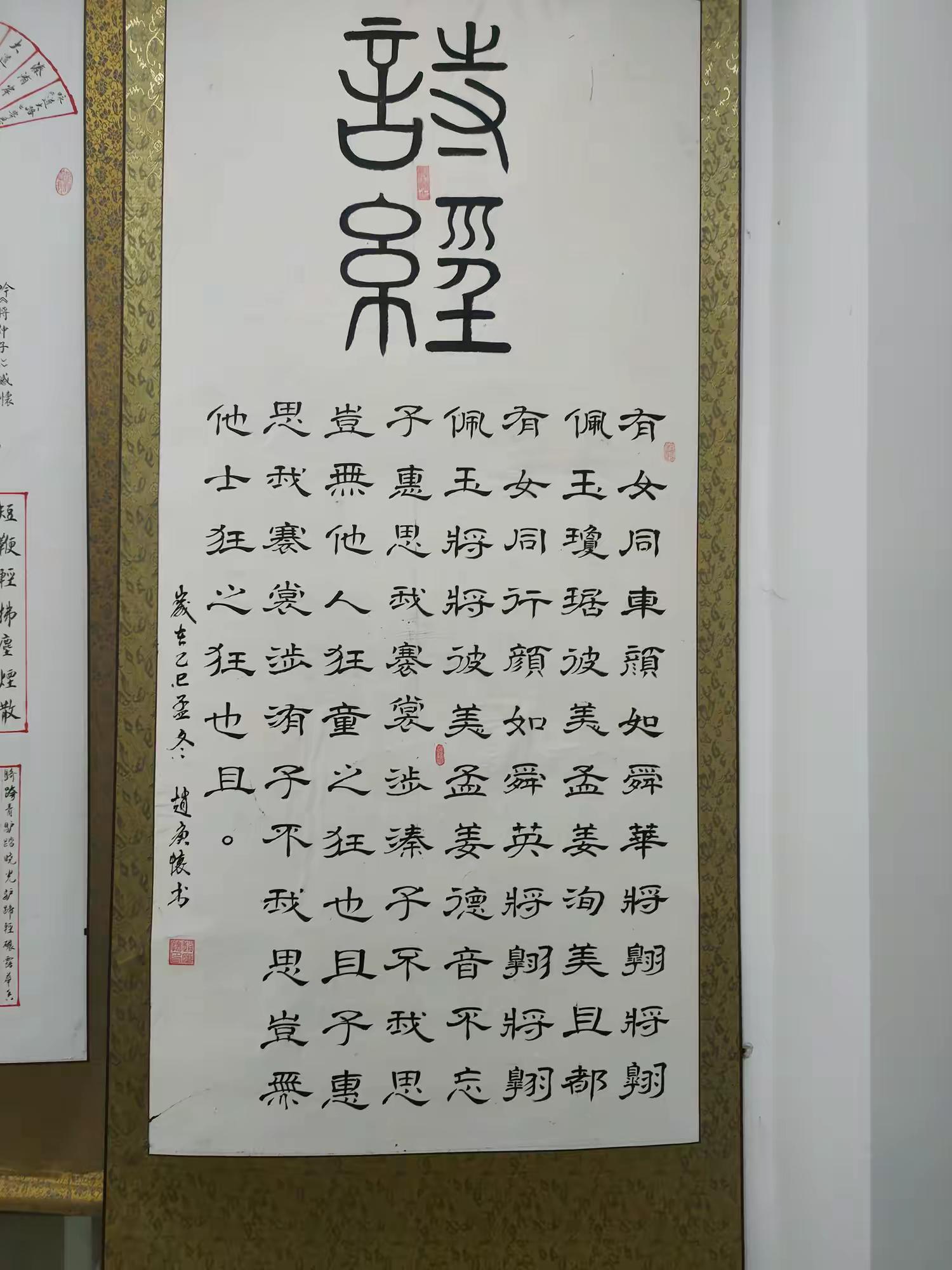 在苑陵书画院院士们以《诗经》《郑风》为主旨,或书写诗文或以文作画,窗外绿植与光影为作品增添自然意趣。